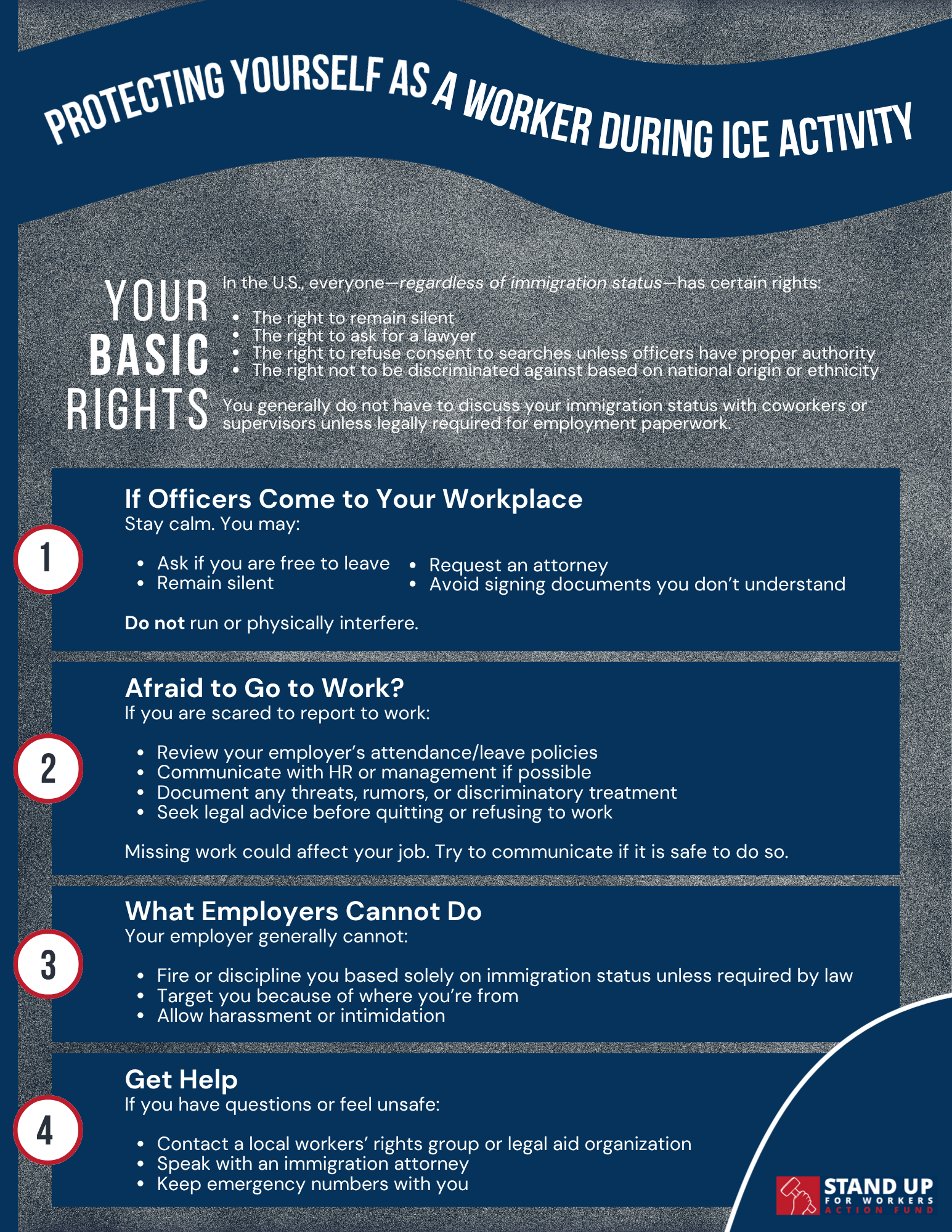 In the U.S., everyone, regardless of immigration status, has certain rights. As ICE activity continues across U.S. cities, it’s important to know what these rights are. Consider sharing this resource with your network or in your workplace.